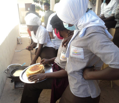 dishing out their food in a cookery practical, within our