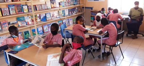 well maintained by librarian, Sainabou Sambou, who is pictured