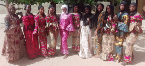Head girl, Jara Badjie is also pictured measuring cloth.